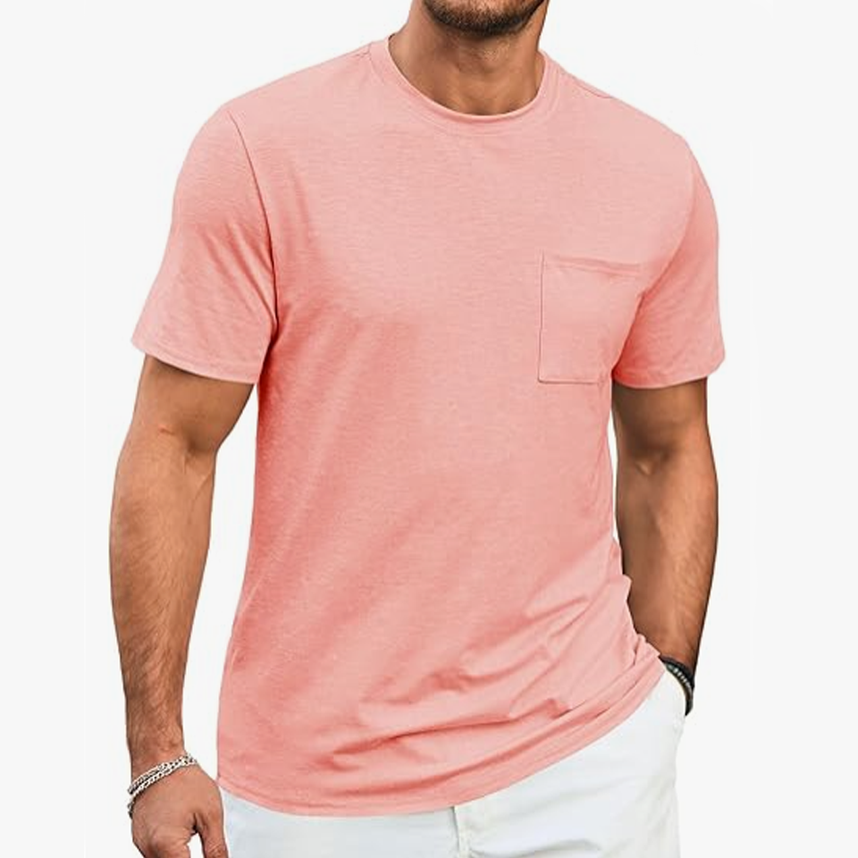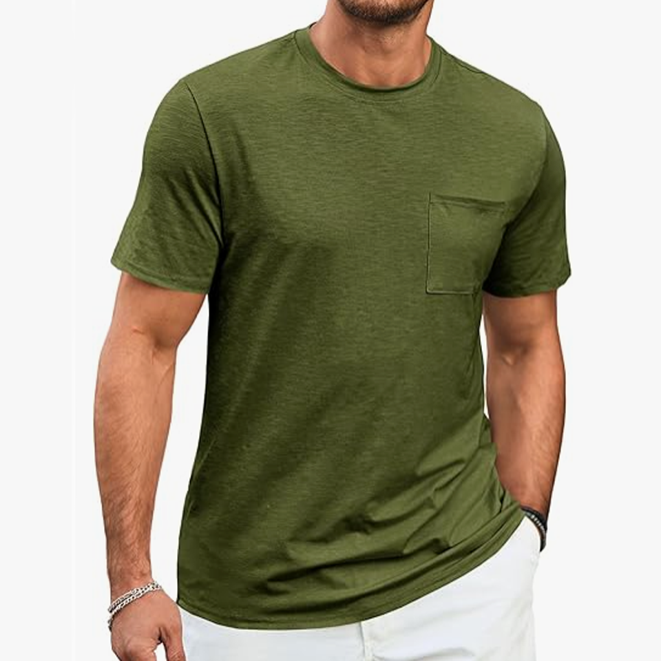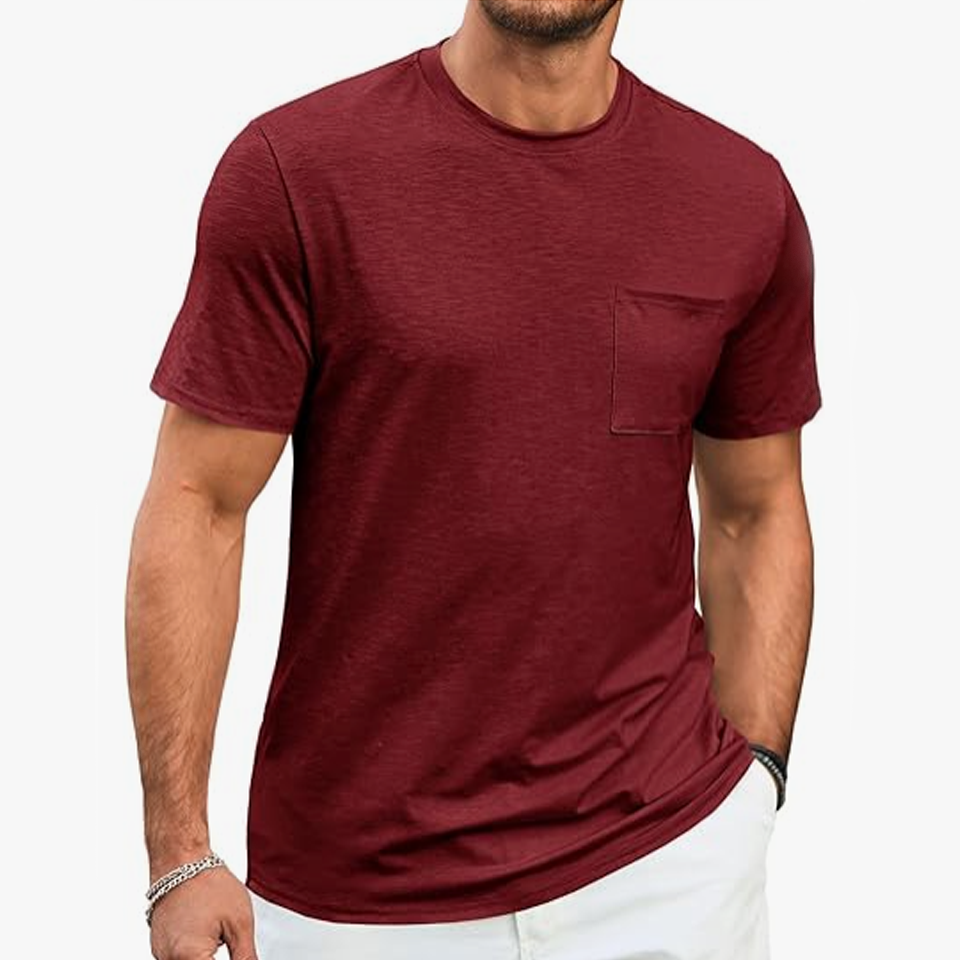 - 【Features】: Mens basic pocket tee shirt with solid plain style, short sleeve, regular fit. The classic crewneck design adds a timeless and versatile touch to these t-shirts, the front chest pocket to store your pens or sunglasses.